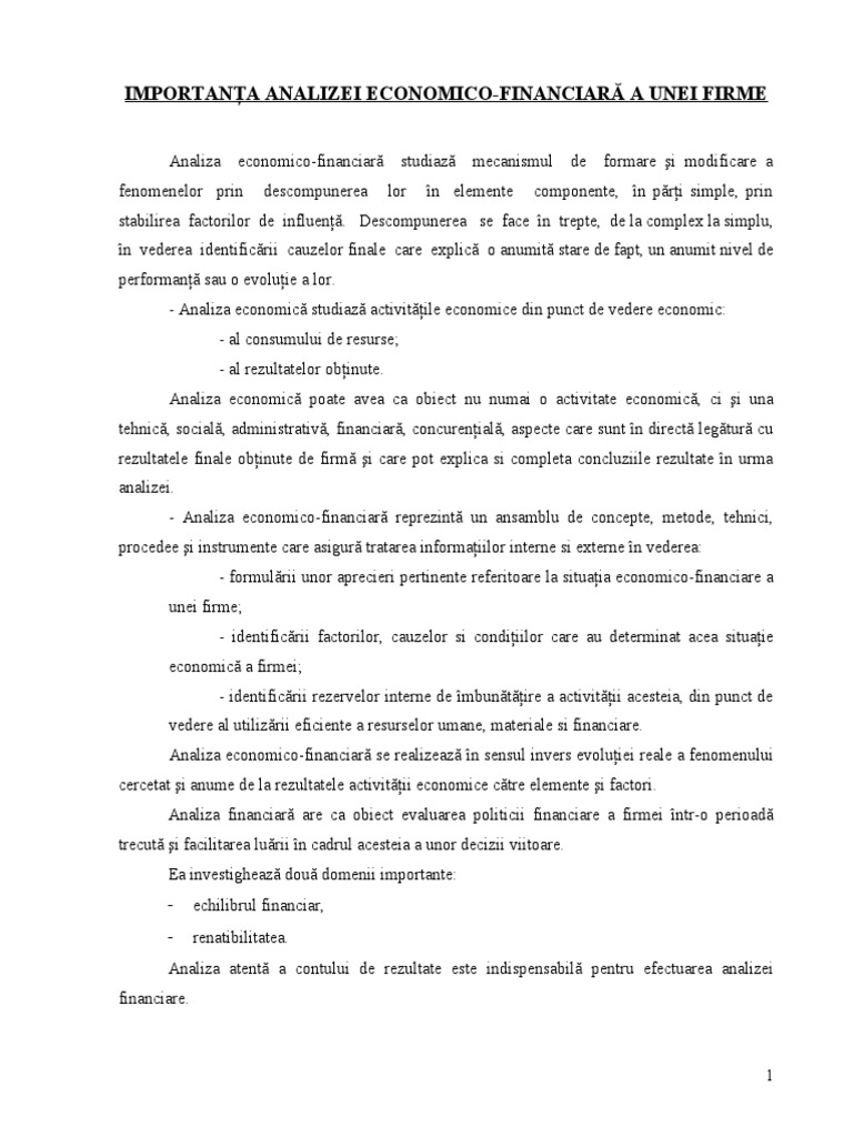 Importanta Analizei Economico Financiara A Unei Firme